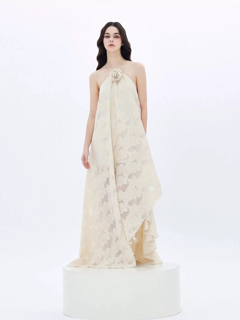 Semi-sheer Off-the-shoulder Jumpsuit in Cream