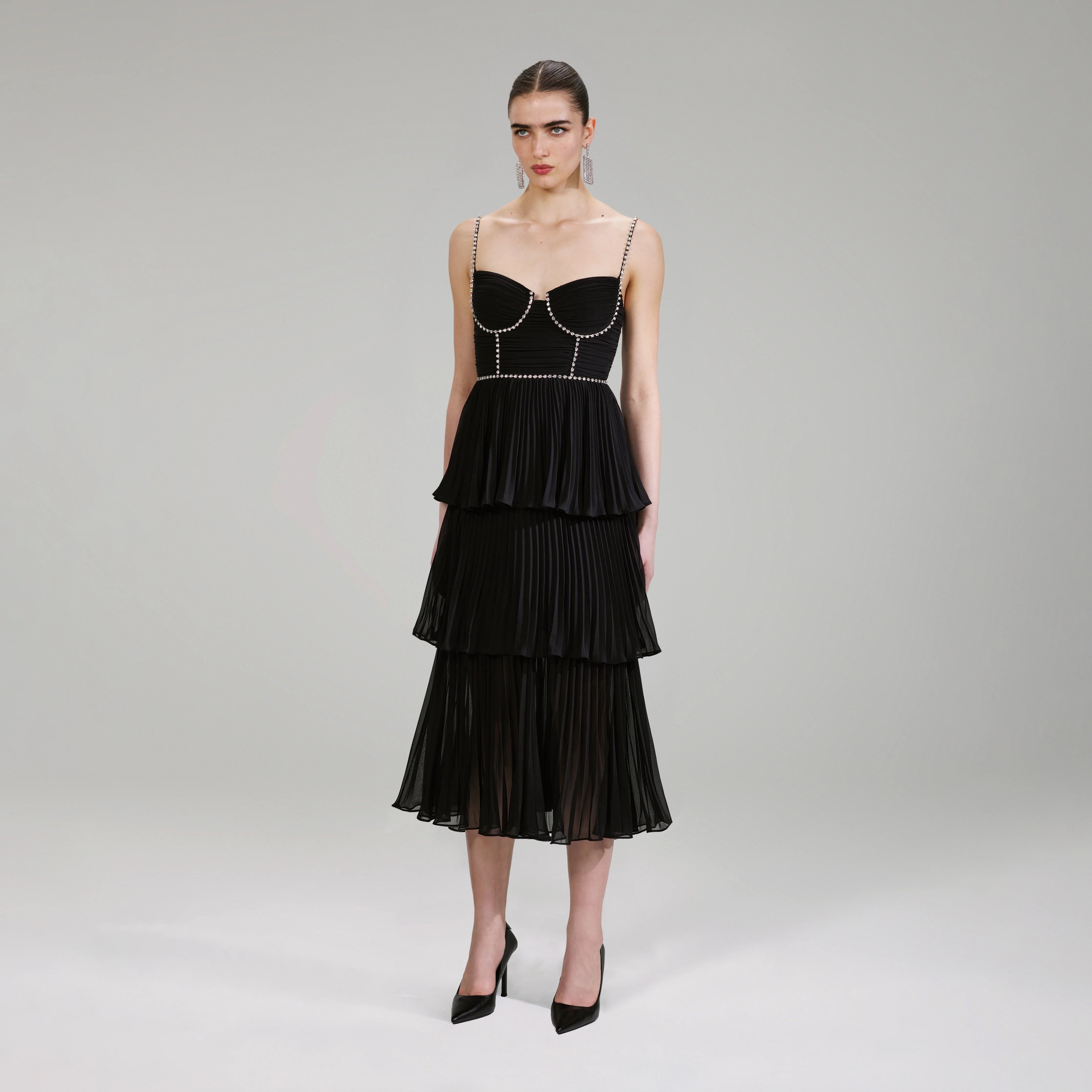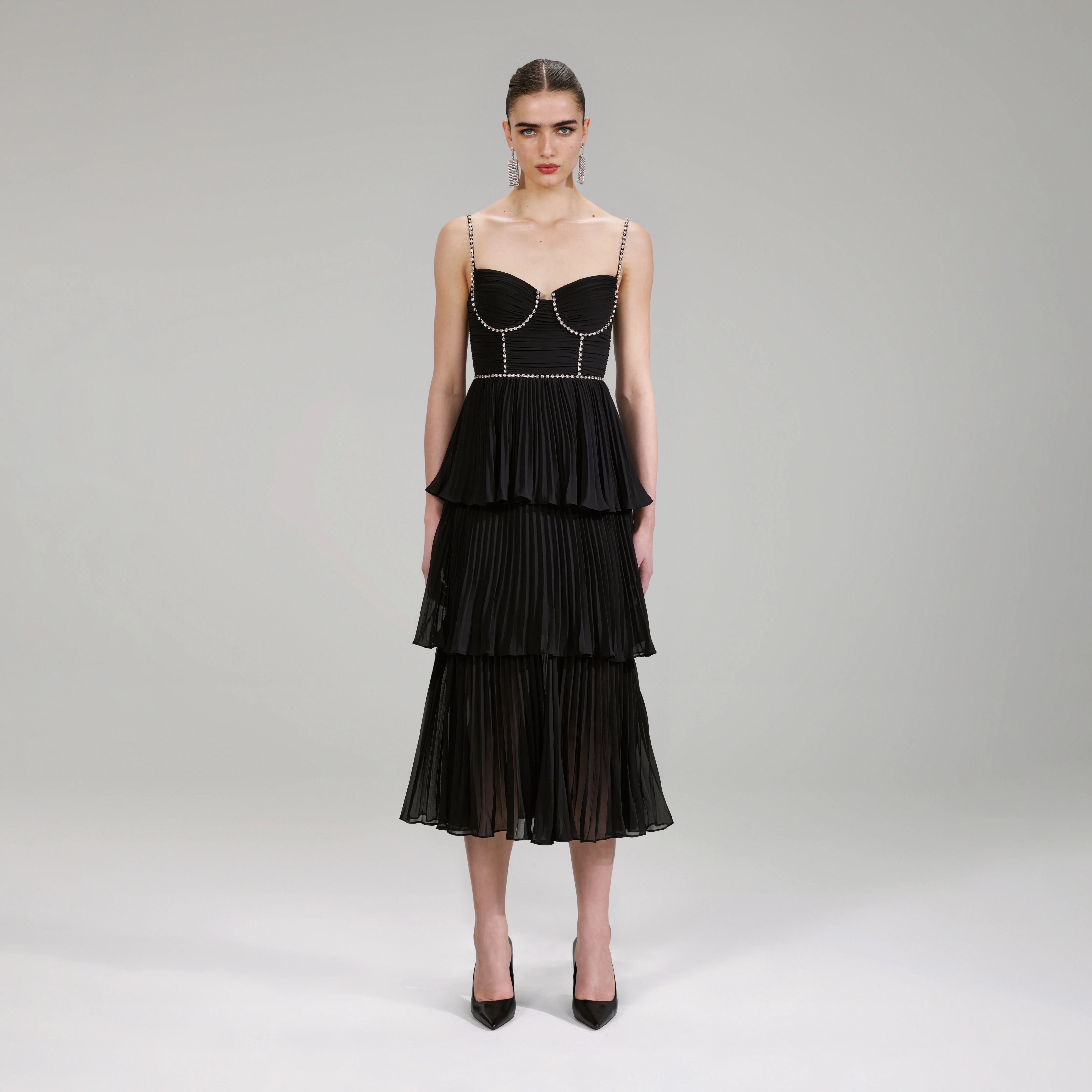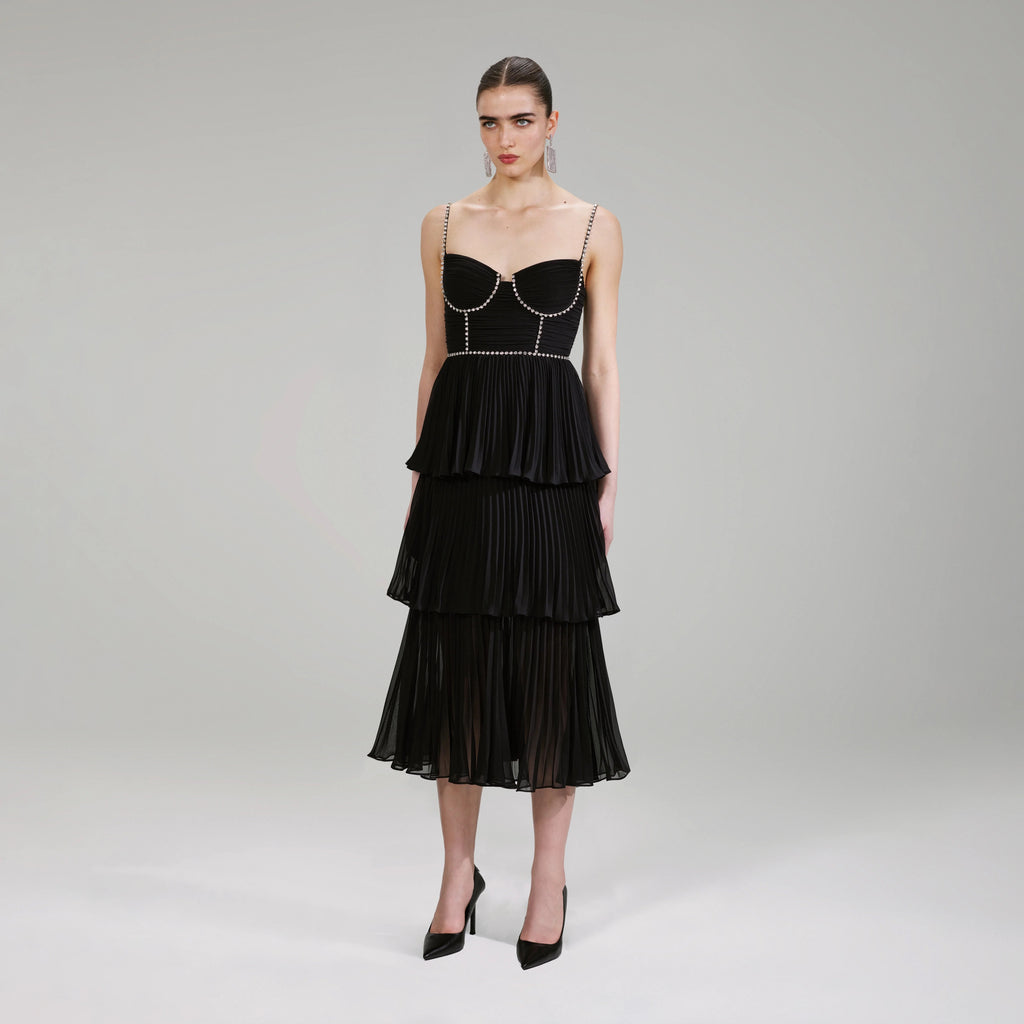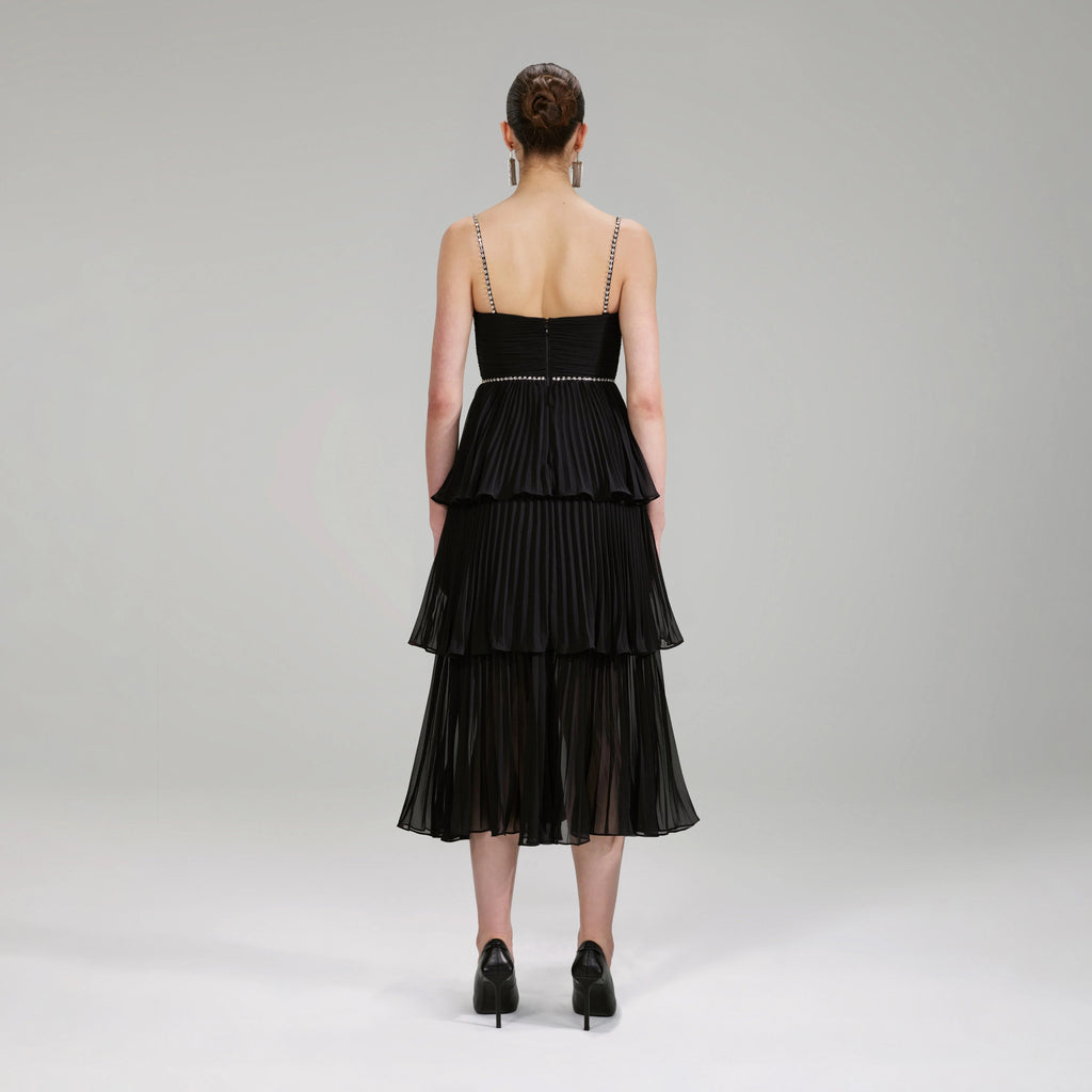 Self-Portrait<br>Black Chiffon Tiered Midi Dress