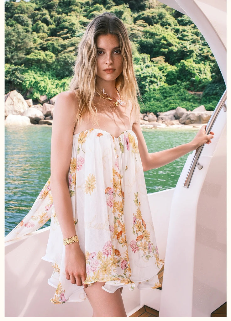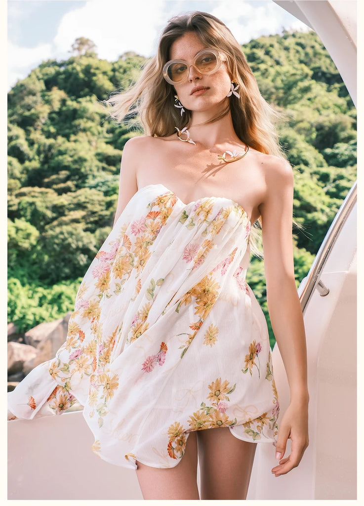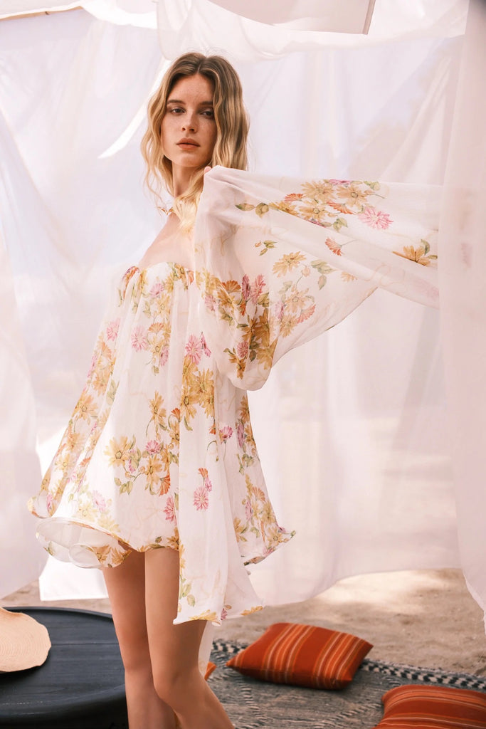 SheerluckThiri Ribbon Mini Dress in Floral - S is backordered and will ship as soon as it is back in stock.