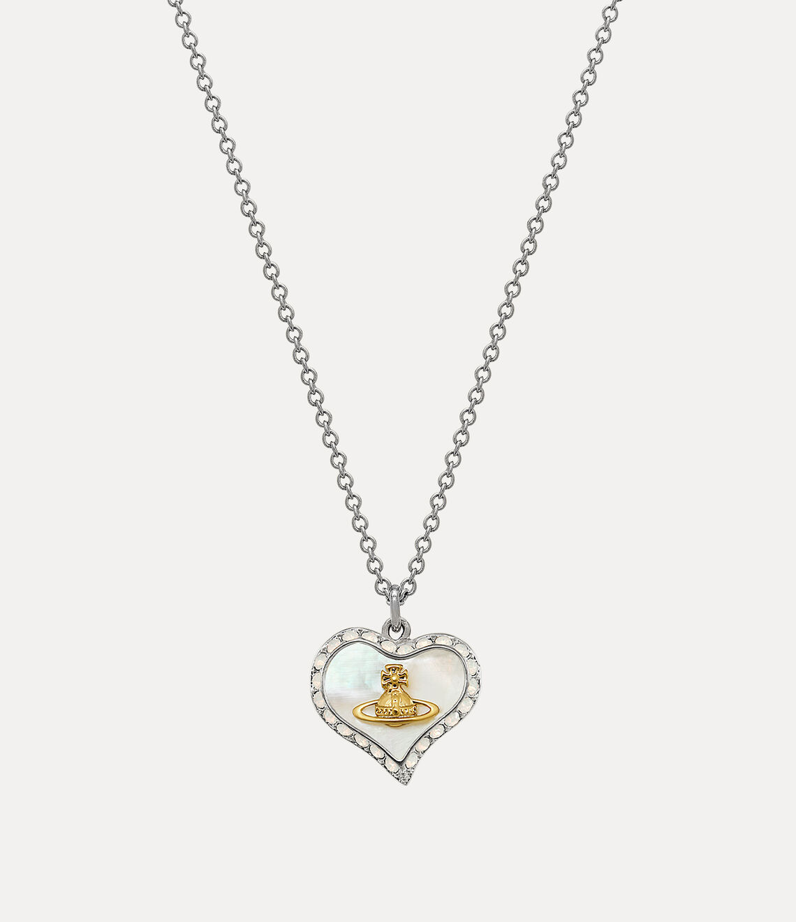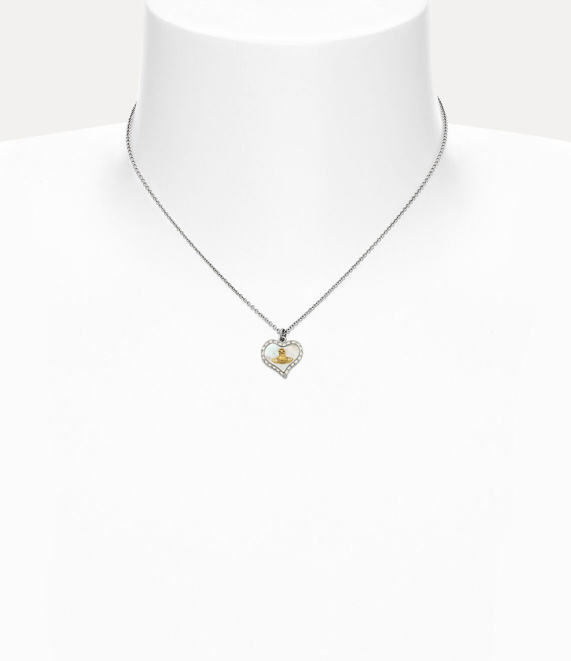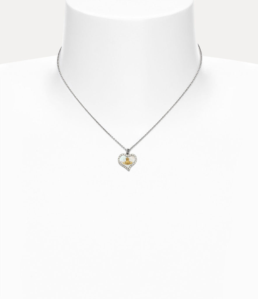 Petra Pendant necklace features an asymmetric heart silhouette, outlined with white-coloured crystals. The heart shape has become a signature style of the house, synonymous with Vivienne's affection for both humanity and the planet.